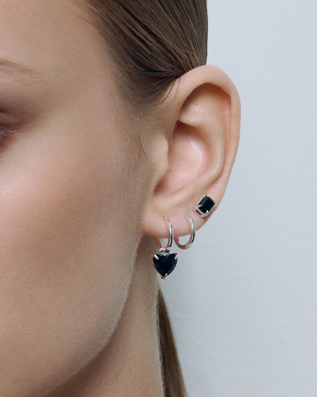 Black Heart Huggies Silver