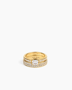 A ring that looks like two joined rings, adorned with an emerald-cut cubic zirconia stone. Made in 925 sterling silver and also available with 14k gold plating. Perfect to pair with the Aperto Pavé Ring.