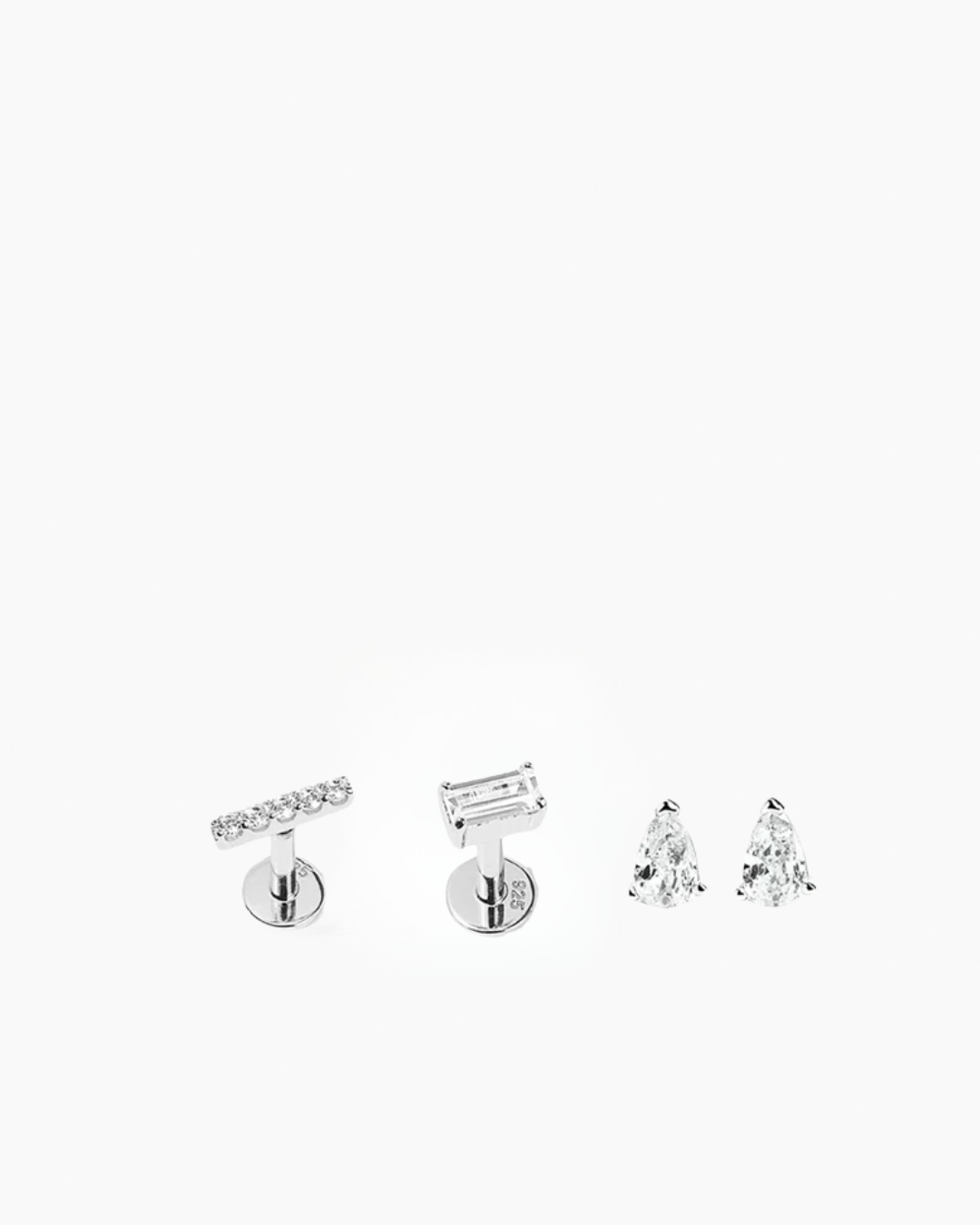 Long Stone Labret and Baguette Labret are sold individually, Pear Studs are sold as a pair. How to use labret: Insert the back part through the ear and screw on the front.