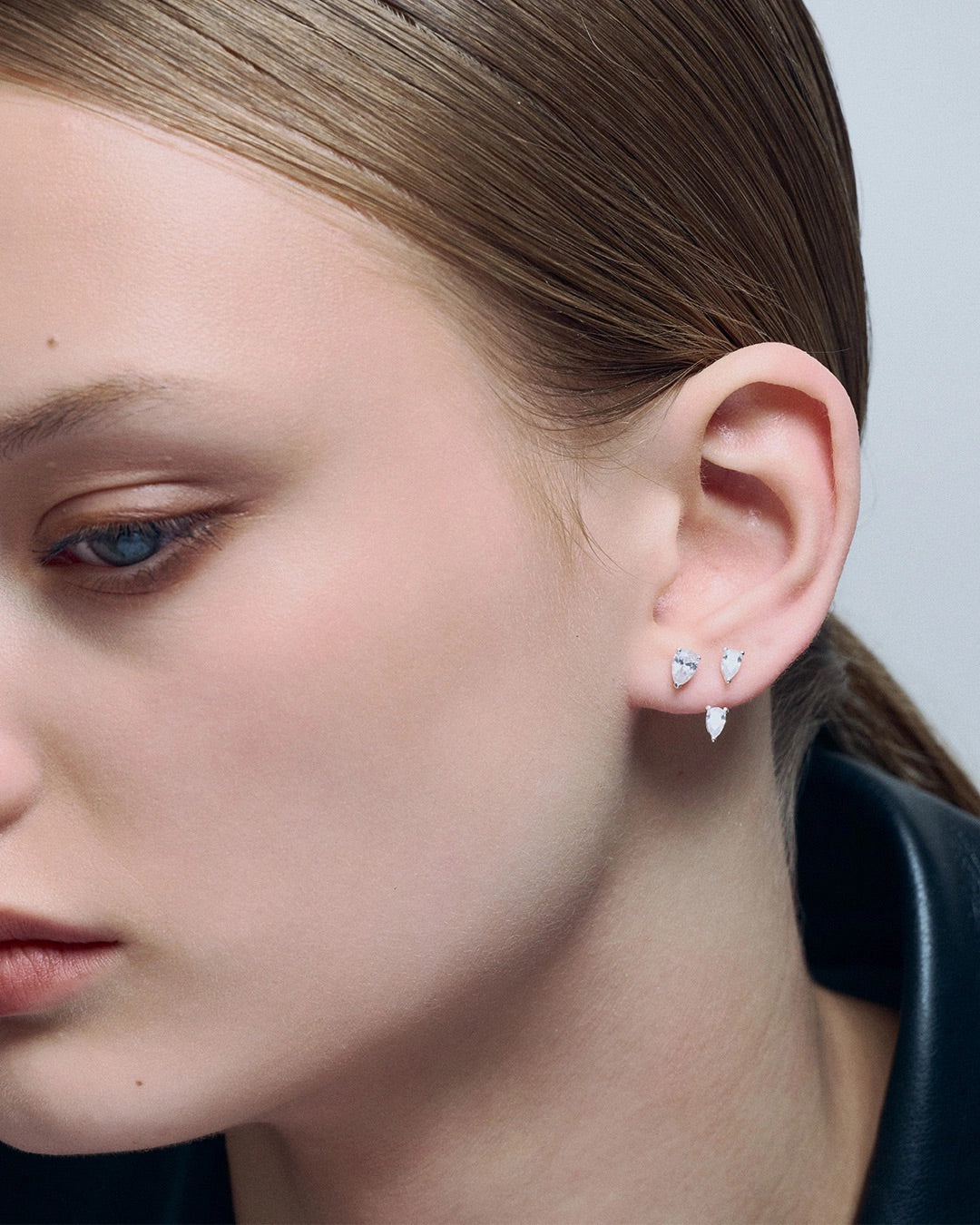 Pear Studs feature a drop-shaped design. Perfect to combine with other studs in different sizes for a personalized look. Made in 925 sterling silver with cubic zirconia. For hygiene reasons, our earrings are sealed. If the seal is broken, we cannot accept returns or exchanges.
