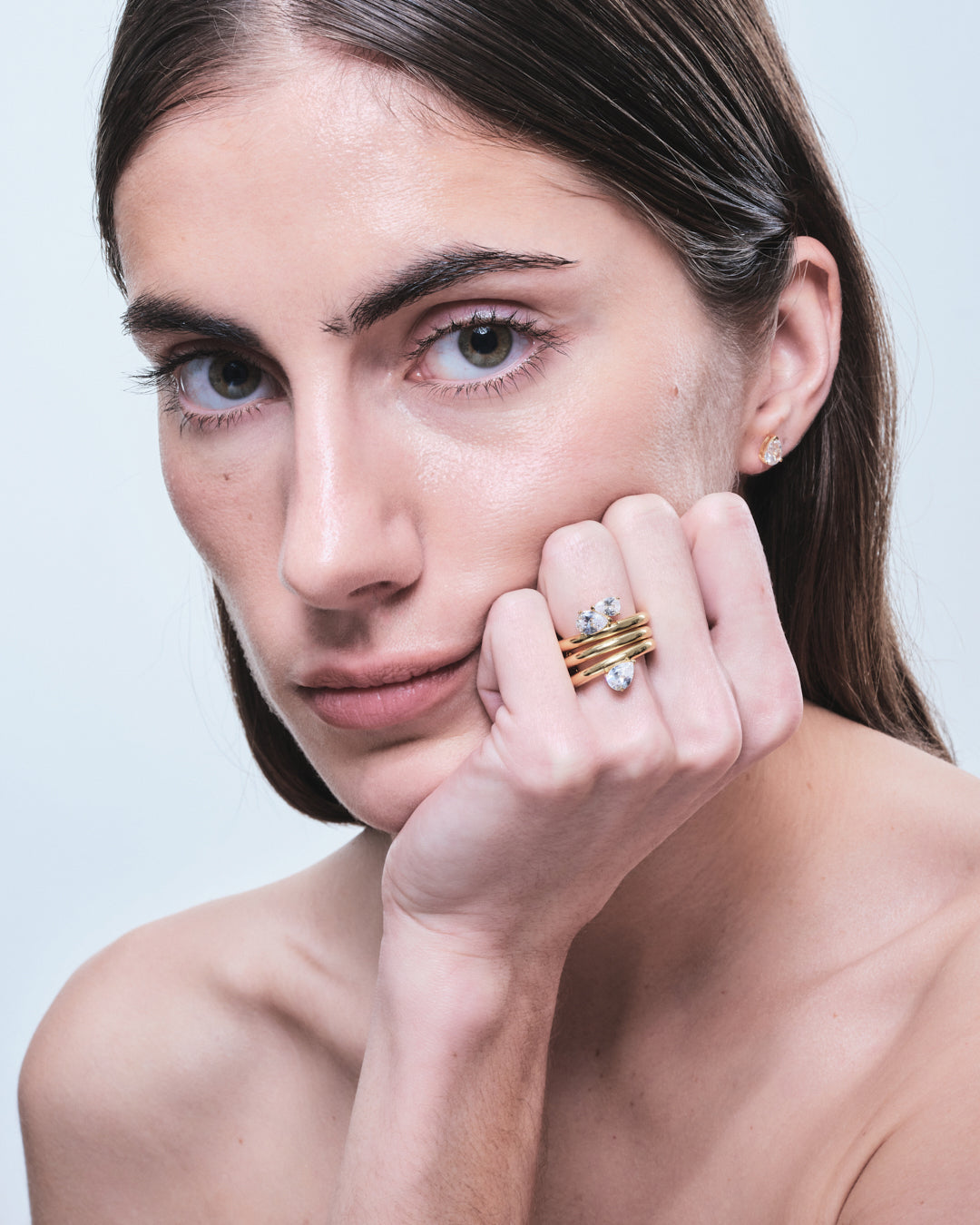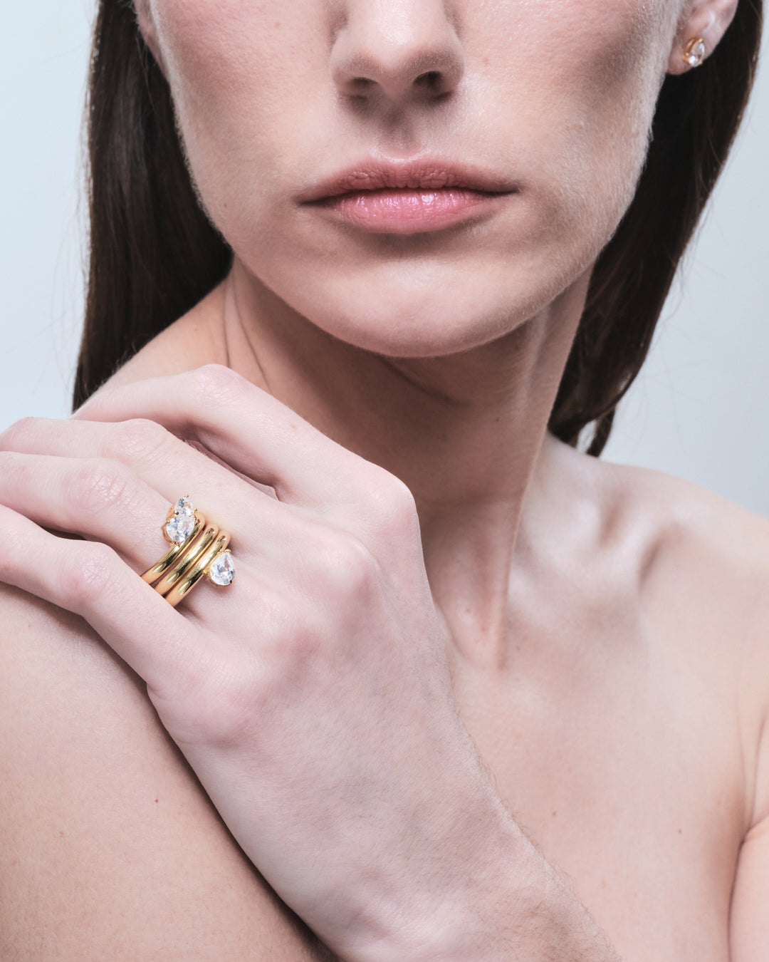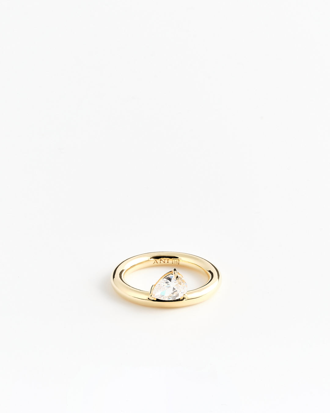 A ring with a pear-shaped cubic zirconia stones. Perfect for stacking with the Sopra Doppio Pera Ring or worn alone for a subtle statement.